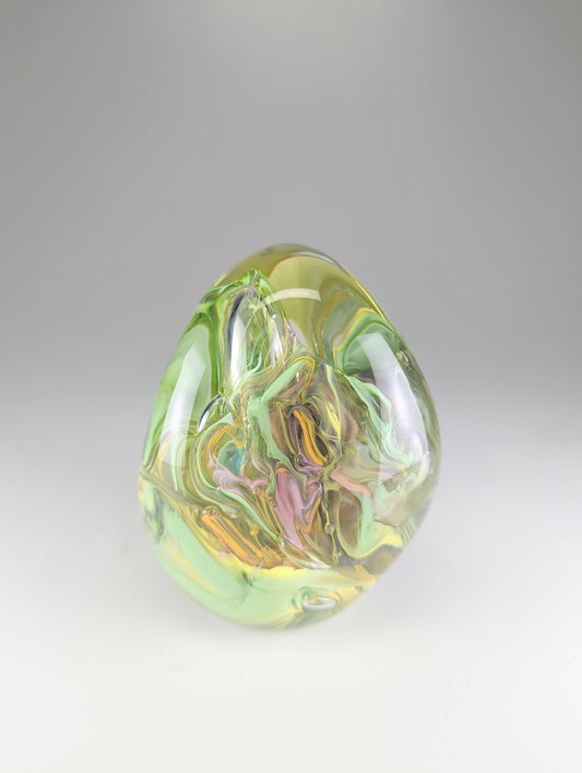 “Ovomorph” hand molded glass blown paperweight sculpture